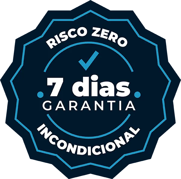 Vou te oferecer 7 dias de garantia incondicional, se dentro desse prazo você perceber que o produto não é para você, pode pedir o dinheiro de volta e eu te devolvo 100% do seu investimento!
